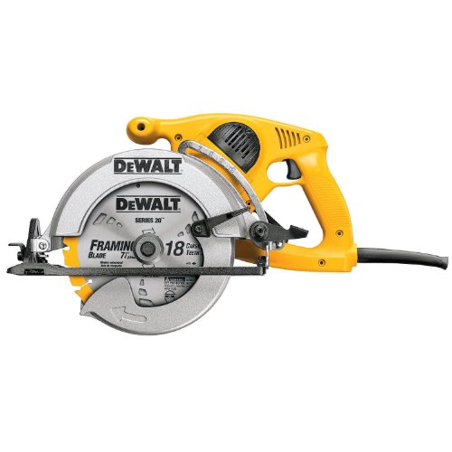 DEWALT's Heavy-Duty 7 1/4-Inch High-Torque Framing Saw is designed to provide powerful cutting action on the most demanding of work sites. Featuring a powerful 15.0 Amp motor that delivers cutting speeds of up to 4600 RPM, this heavy-duty machine has a high-strength cast aluminum base and a lower guard design for superior durability and performance. This framing saw also features an electric brake that safely stops the blade after use, a bevel capacity of 50 degrees for a wide range of applications on the job site and an integrated hook for quick and easy storage.